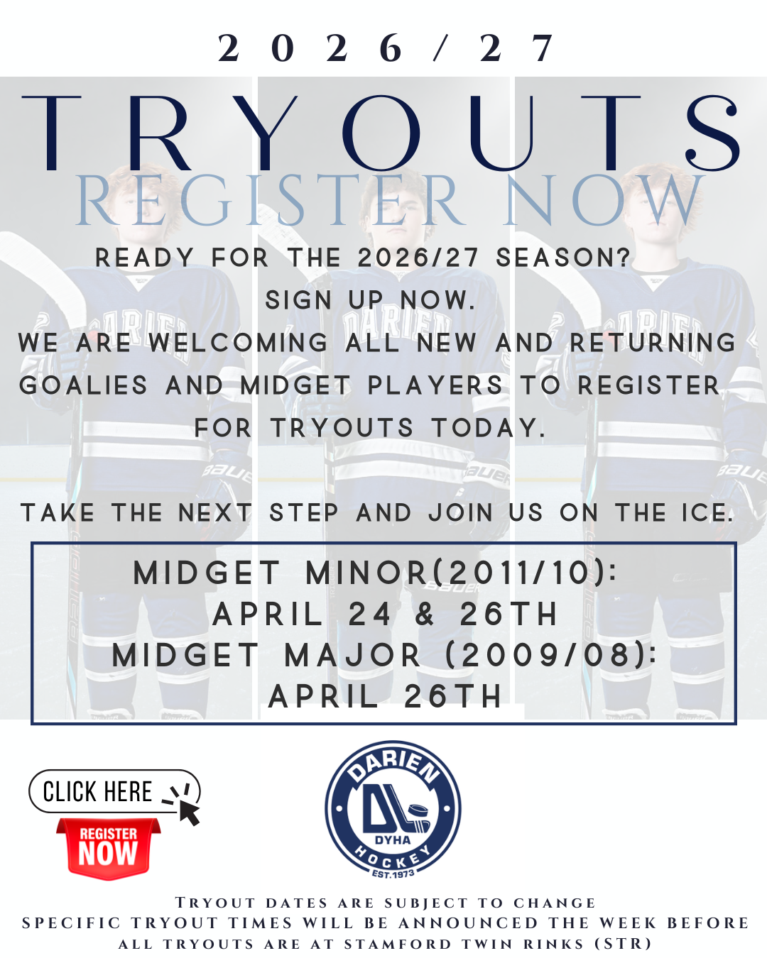 Thank you to all the players for your hard work and great effort during the tryout process. We also thank the families for supporting your players throughout this time.