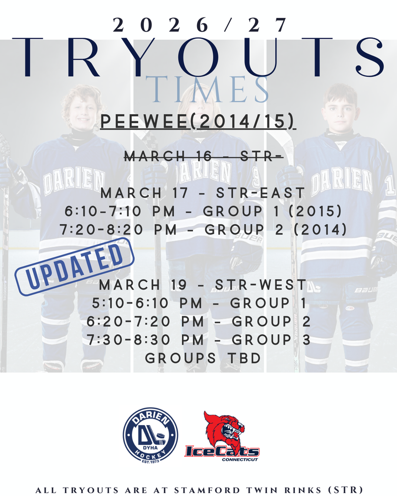 PW tryout times are posted. Please review your assigned session carefully and plan to attend the time slot based on birth year for the first & second skate. Third session splits will be posted on the website prior to that date. All tryouts are at Stamford Twin Rinks. Be sure to check the website before heading out for any updates or changes. We’re looking forward to seeing everyone on the ice.