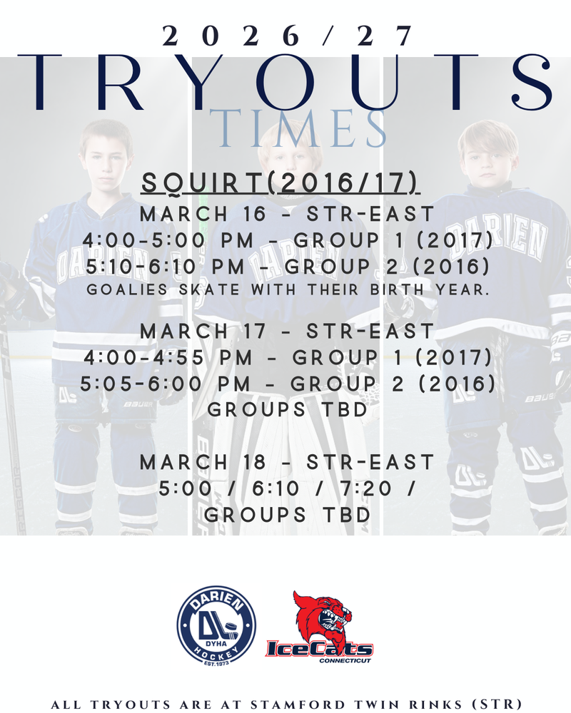 Please attend the below MITE tryout time Thursday, March 12th slot based on your player’s tryout number: