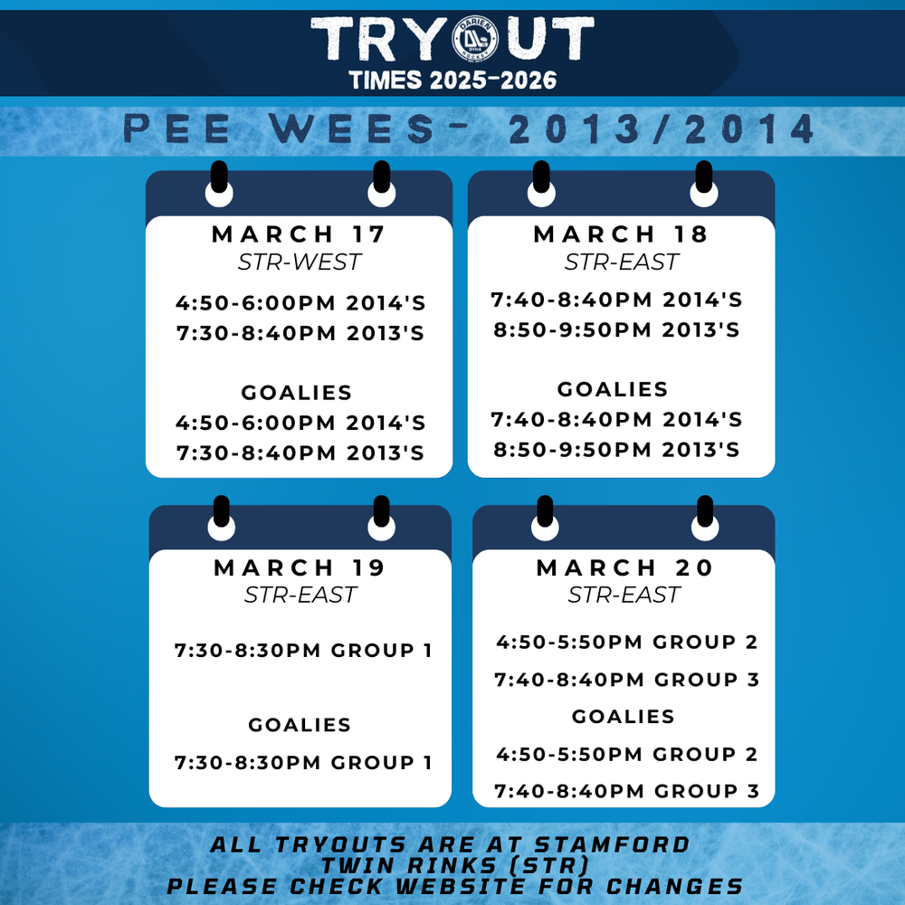 For the first and second tryout, players should attend the time slot listed according to their birth year.